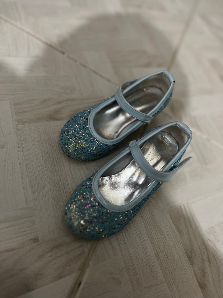 Mavi Simli Kız Çocuk Topuklu Ayakkabı