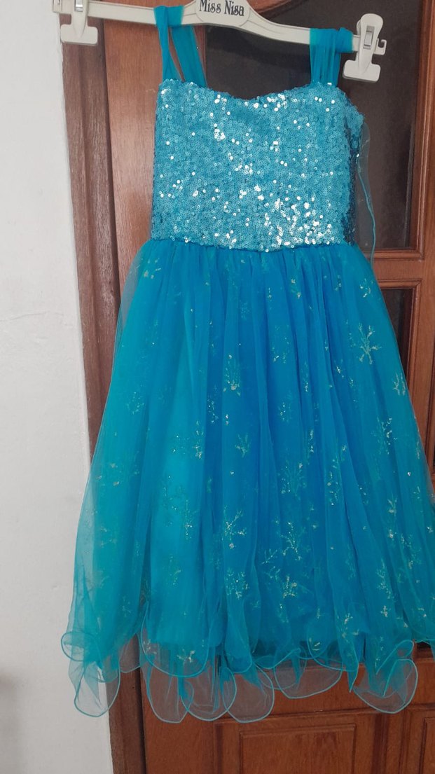 Mavi Simli Straplez Kız Elbisesi
