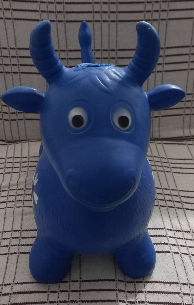 Dokulu yüzeye sahip, beyaz çiçek desenli renkli mavi şişme oyuncak hayvan. Fazla kullanılmadı sıfır gibi sıfırı 600 TL