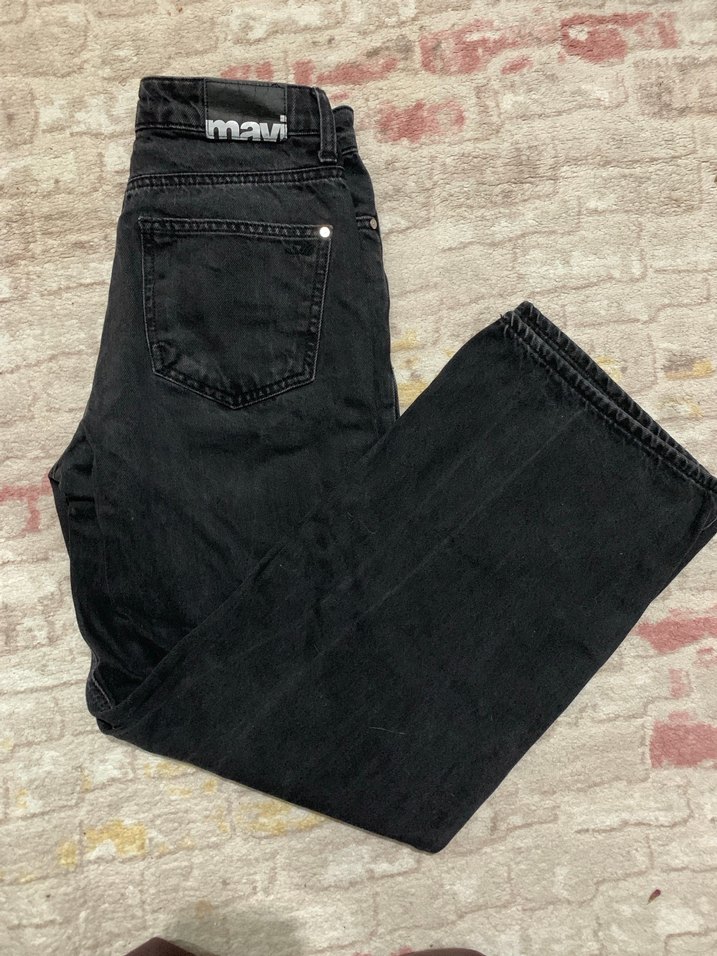 Mavi markanın siyah, bol kesim, midi boy kadın jean pantolonu, desen içermeyen rahat ve sokak stiline uygun tasarım.