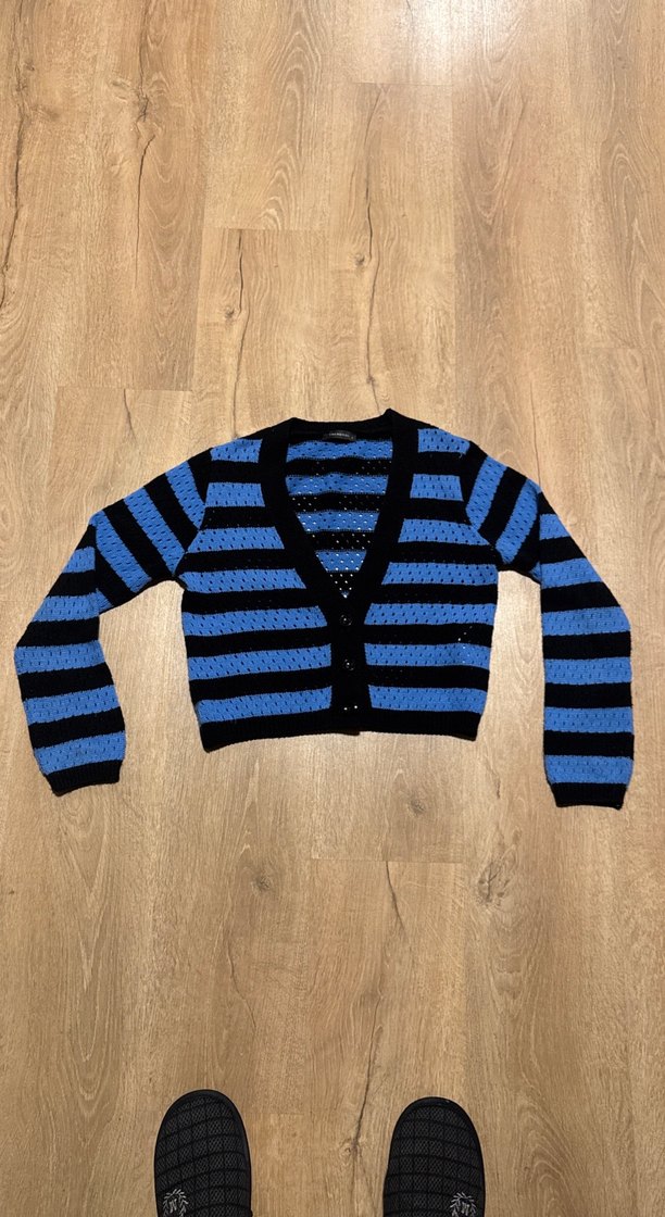 Mavi Siyah Çizgili Triko Hırka