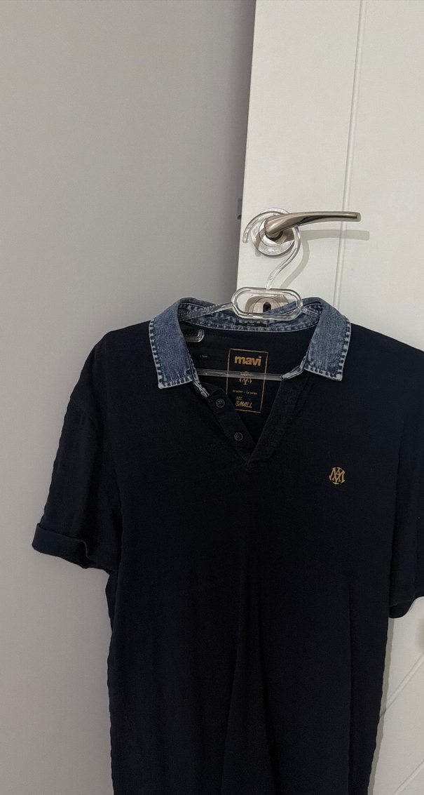 Mavi Siyah Denim Yaka Erkek Polo Tişört