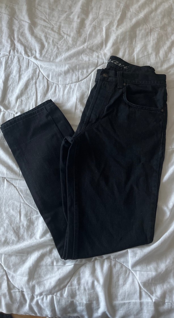 Siyah renk, kot pantolon. Günlük kullanım için rahat ve şık, desen içermeyen tasarım.