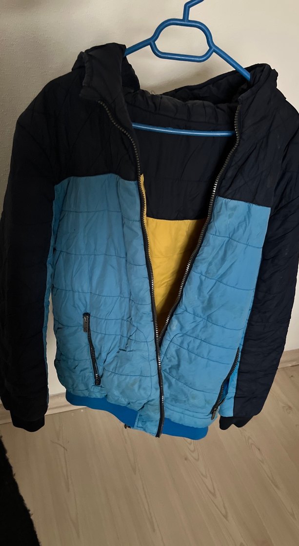Mavi Siyah Fermuarlı Erkek Mont
