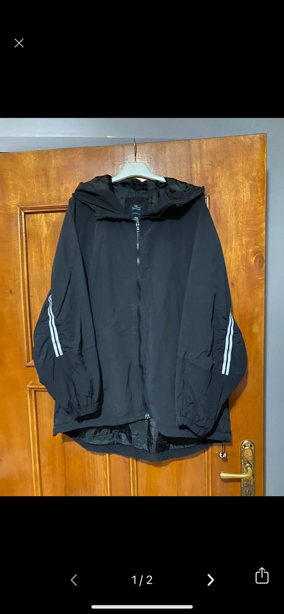 Siyah renkli, kapüşonlu ve fermuarlı kadın yağmurluğu. Yüksek yakalı, uzun kollu, rahat kesim ve şerit detaylıdır. Dış mekan kullanımı için uygundur. ️