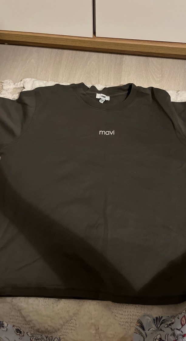 Siyah pamuklu kısa kollu, yuvarlak yakalı ve rahat kesim tişört, önünde 'mavi' yazısı ile sade bir görünüm sunar. Günlük kullanıma uygundur.