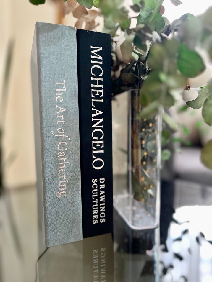 Michelangelo 'The Art of Gathering' mavi ve siyah kumaş kaplı dekoratif kitap kutu