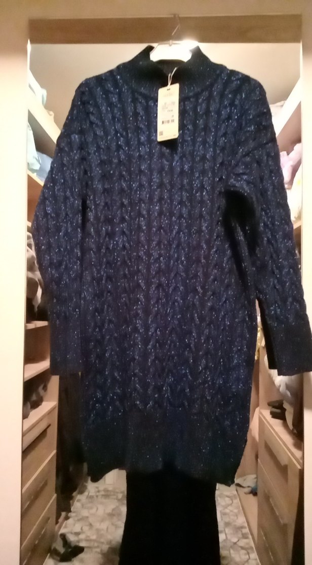 mavi siyah simli Triko Kadın uzun Kazak