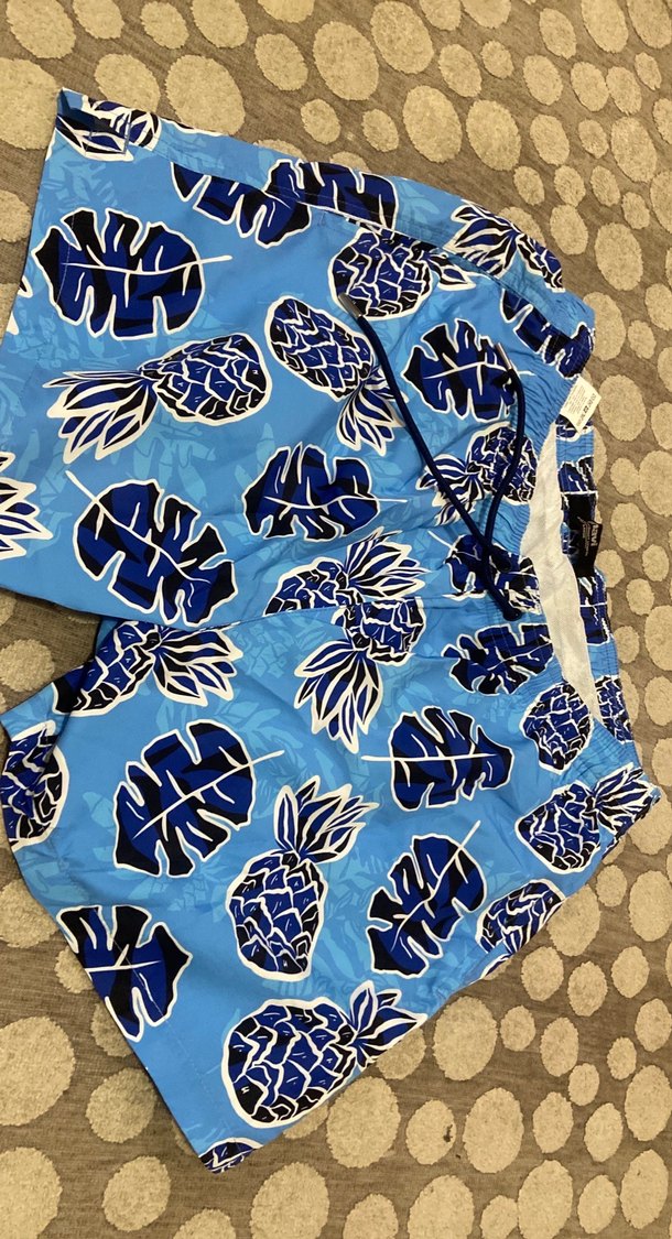 mavi lacivert yaprak ve ananas baskılı cepli mayo