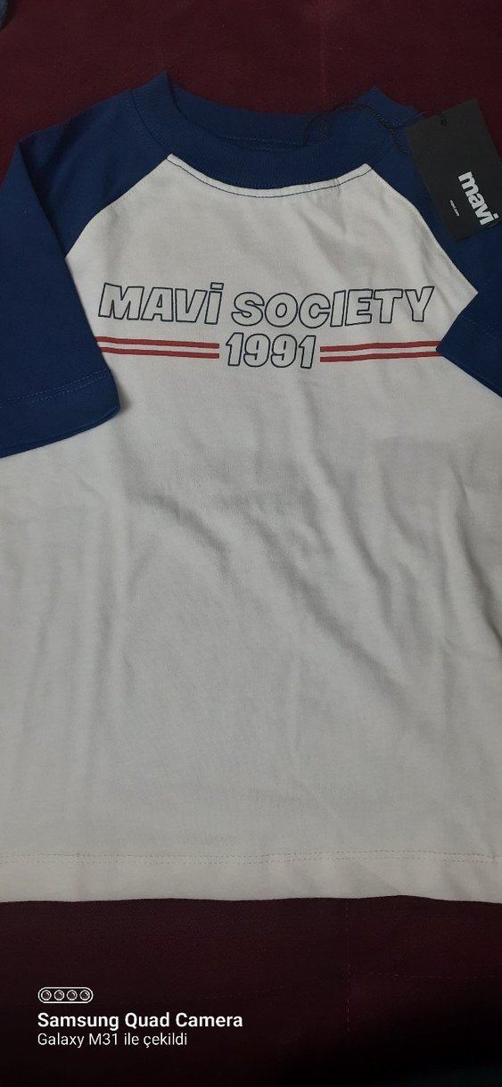 Pamuk kumaştan, kısa kollu ve bisiklet yaka erkek çocuk tişörtü. Üzerinde "Mavi Society 1991" baskısı ve düğme detayları bulunur. Şık ve rahat bir sokak stili ürünü.