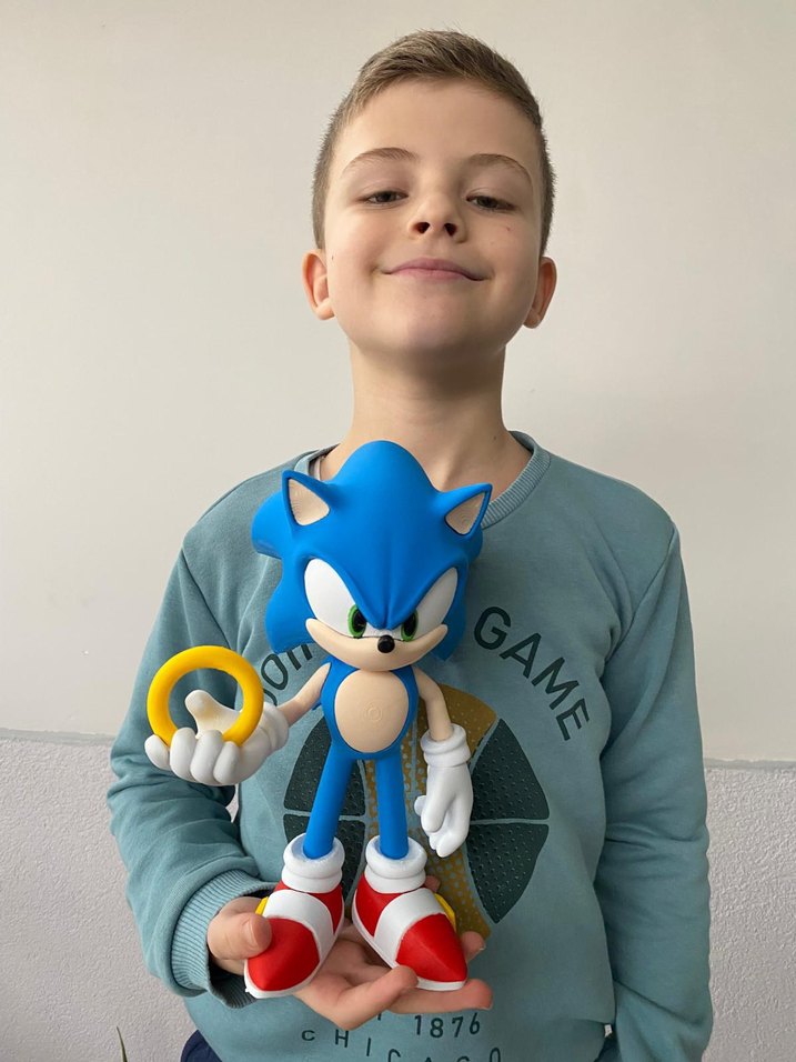Mavi Sonic aksiyon figürü, altın halka tutuyor