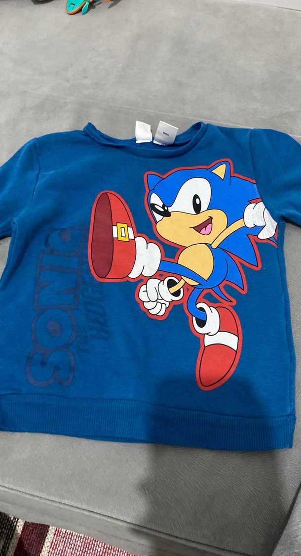Uzun kollu, bisiklet yaka ve renkli Sonic baskılı, ince kesim erkek sweatshirt. Yumuşak ve sıcak kumaştan, kolay giyim için cırt cırtlı detaylı.
