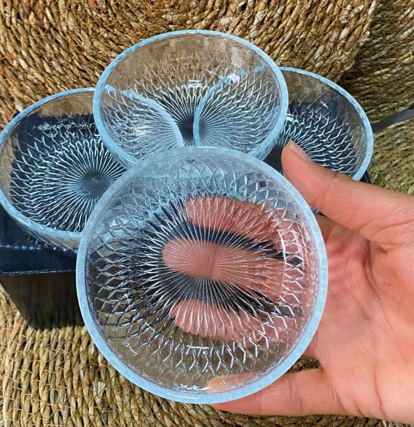 Mavi soyut desenli, dokulu yüzeye sahip cam tabak seti. Counterculture tarzını yansıtır, servis için uygundur. ️