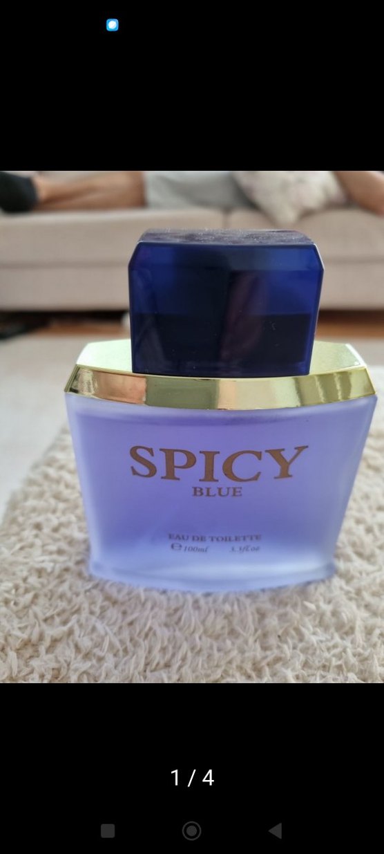 Spicy Blue erkek parfümü, parlak mavi şişede, rahat ve karşı kültür tarzında sunulur. 100 ml Eau de Toilette, baharatlı koku sunar.