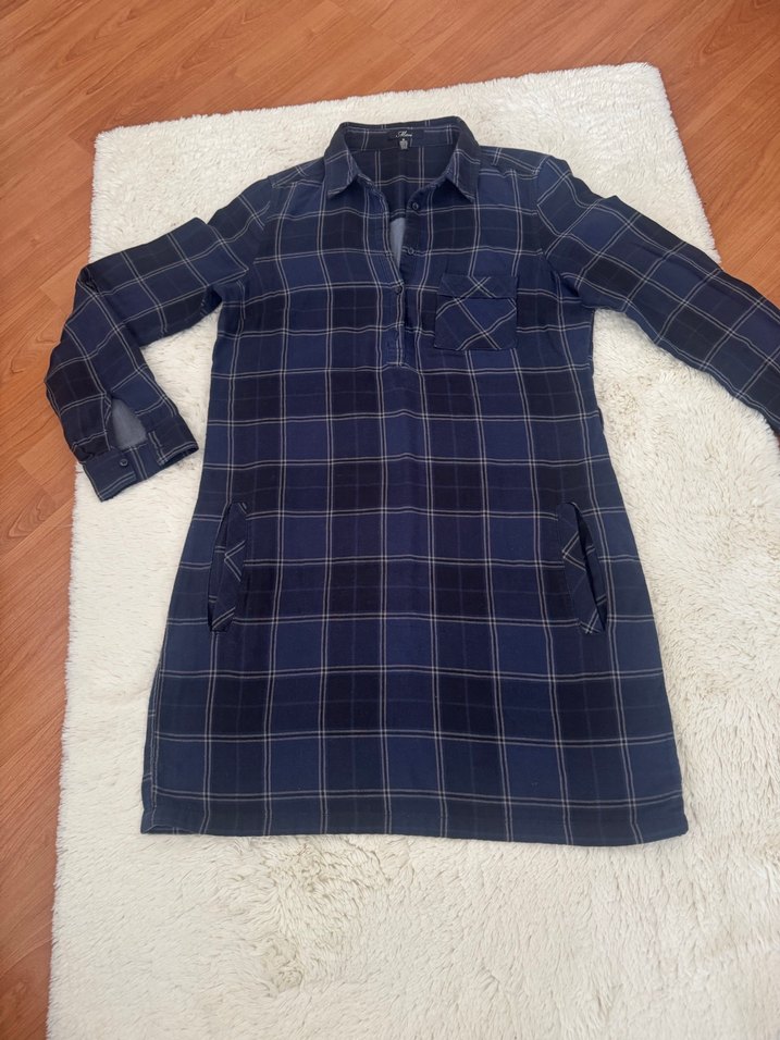 Kol altı göğüs 52 cm. Göğüs 50 cm.Basen 50 cm.düz iniyor geniş kesim Kol boy 64 cm.Boy 88 cm. Lacivert renk ekoseli desen çift dokuma spor elbise kumaşı çift dokuma yumuşacık mavi marka spor şık