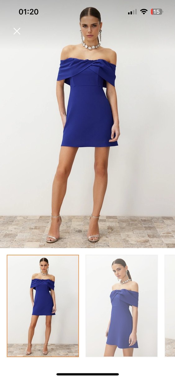 Mavi straplez mini elbise, ince askılı kolları ve düz dokusu ile modern ve minimalist bir görünüm sunar. Romantik akşamlar için uygundur.