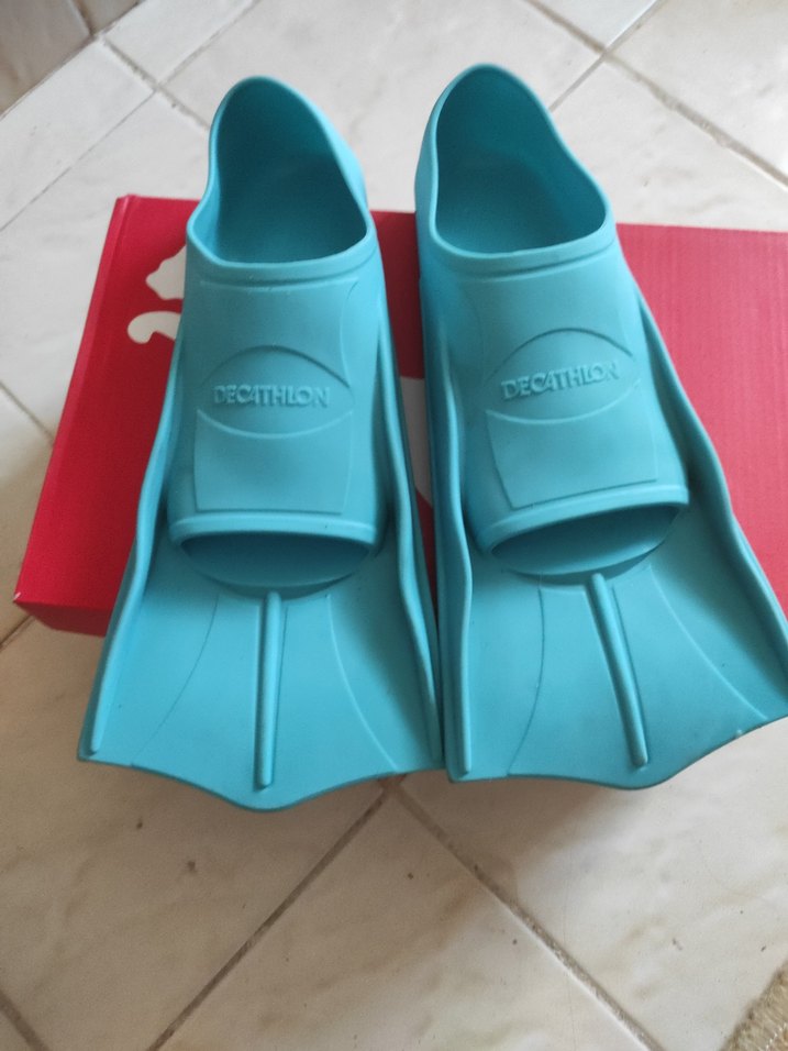 Mavi renkte kauçuk malzemeden yapılmış, velcro detaylı su ayakkabısıdır. Plajda kullanıma uygundur ve DECATHLO markasını taşır. 31.32 no