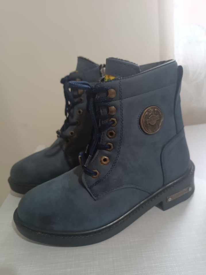 Mavi Süet Erkek Biker Botları