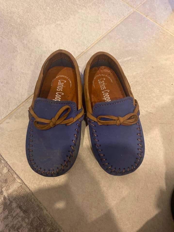 Koyu mavi süet malzemeden, bağcıklı ve batik desenli bohem tarzında erkek çocuk ayakkabısı. Üzerinde 'Carios Coo' yazısı bulunur. 1000 tl ye aldım ayağına tam olmadı ve giyemedi maalesef