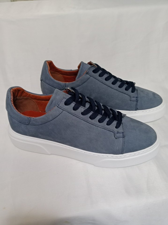 Erkekler için mavi süet üst yüzeye, lacivert bağcık ve beyaz tabana sahip bu spor ayakkabı, sokak stili ve rahat şıklığı bir araya getiriyor. Spor görünümler için ideal. Ayakkabılarımız yüzde yüz deri olup tamamen el yapımıdır. Ürün kutulu olup yedek deri iç astar yedek bağcık ve kerata hediyesi ile beraber gelmektedir.