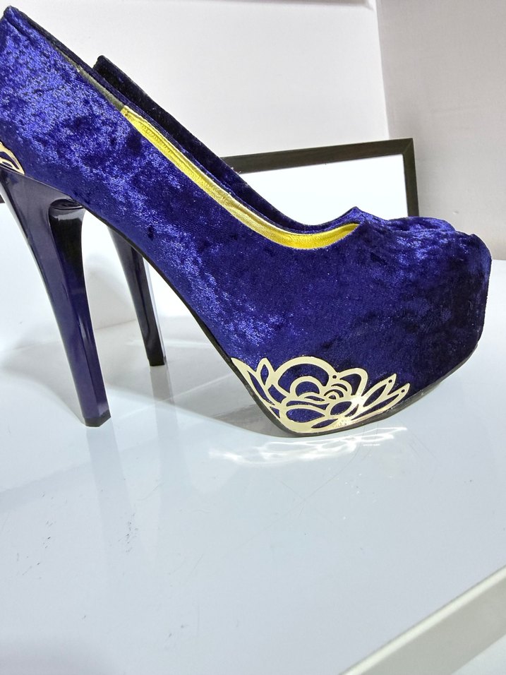 Mavi süet platform topuklu stiletto, baskılı çiçek deseni ve tokalı detaylarla cesur ve gösterişli tarz sunar. Romantik akşamlar için uygun. Kına akşamı sadece 2 saat giyildi.Marka temsili..