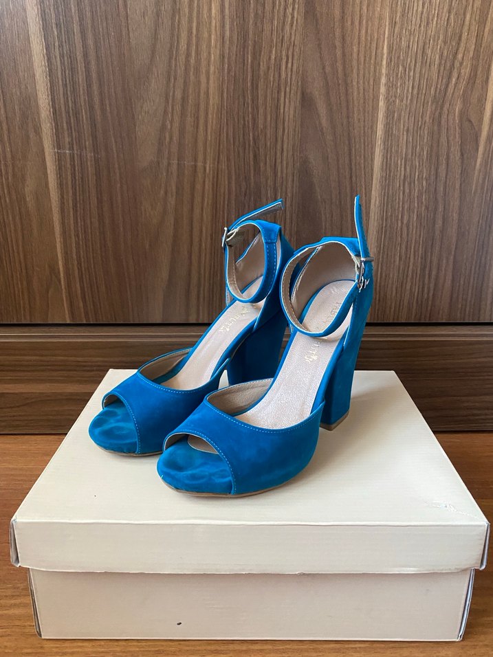Mavi Süet Tokalı Kadın Topuklu Ayakkabı