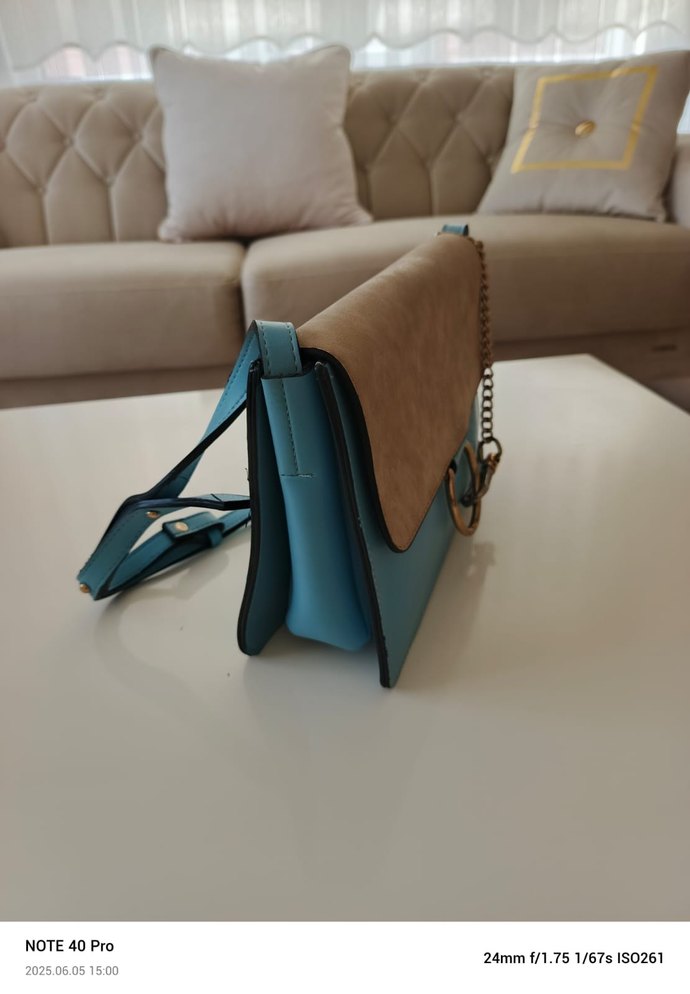Mavi Süet Zincir Detaylı Kadın Çanta