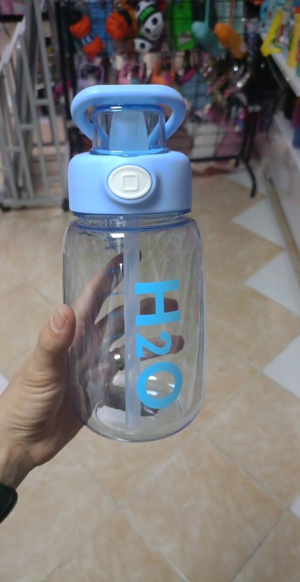 Pastel mavi renkte, kapağı güvenli ve içinde pipet bulunan suluk. Önünde "H2" yazısı yer alıyor. Kolay içim sağlar.