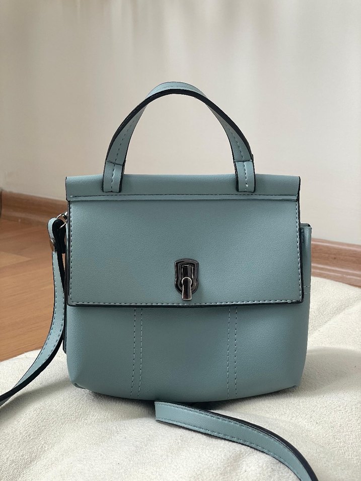 Mavi suni deri kadın çanta, tokalı kapanış ve minimalist, çağdaş tasarıma sahiptir. Kulpu ve askısıyla farklı taşıma seçenekleri sunar. Günlük kullanım için uygundur.