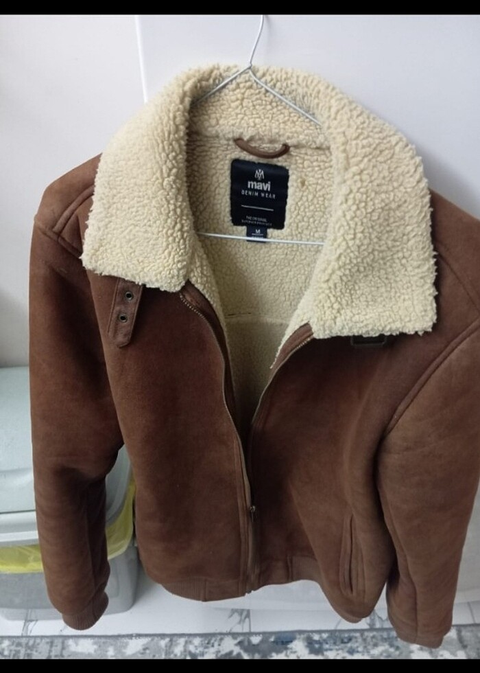 MAVİ suni kürk yaka kahverengi erkek ceketi