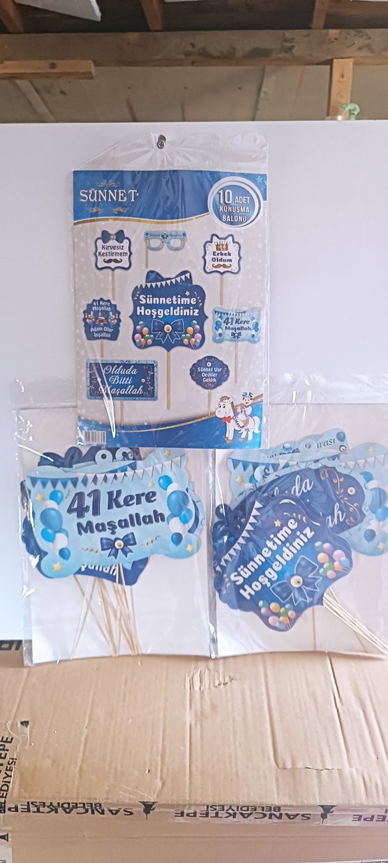 Sünnet kutlamaları için "Hoşgeldiniz" ve "41 Kere Maşallah" gibi ifadeler içeren 10 adet mavi konuşma balonu seti.