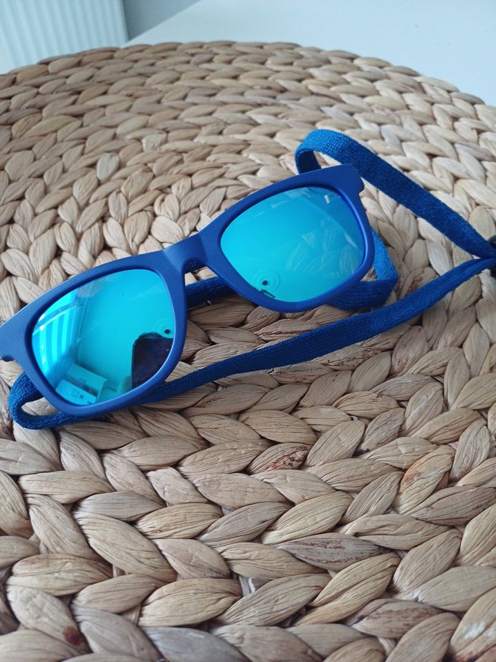 Mavi yansıtıcı camlı ve uyumlu ipi dahil minimalist ve renkli tarzda gözlük. atasun optikten alındı.hic bir sorunu yok 2 yastan itibaren 10 yasa kadar uygundur.