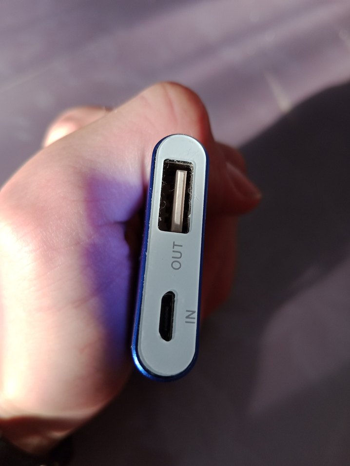 USB çıkış ve giriş portlarına sahip, taşınabilir mavi renkli power bank. Canlı renk ve kompakt tasarım. 3000 watt pili var