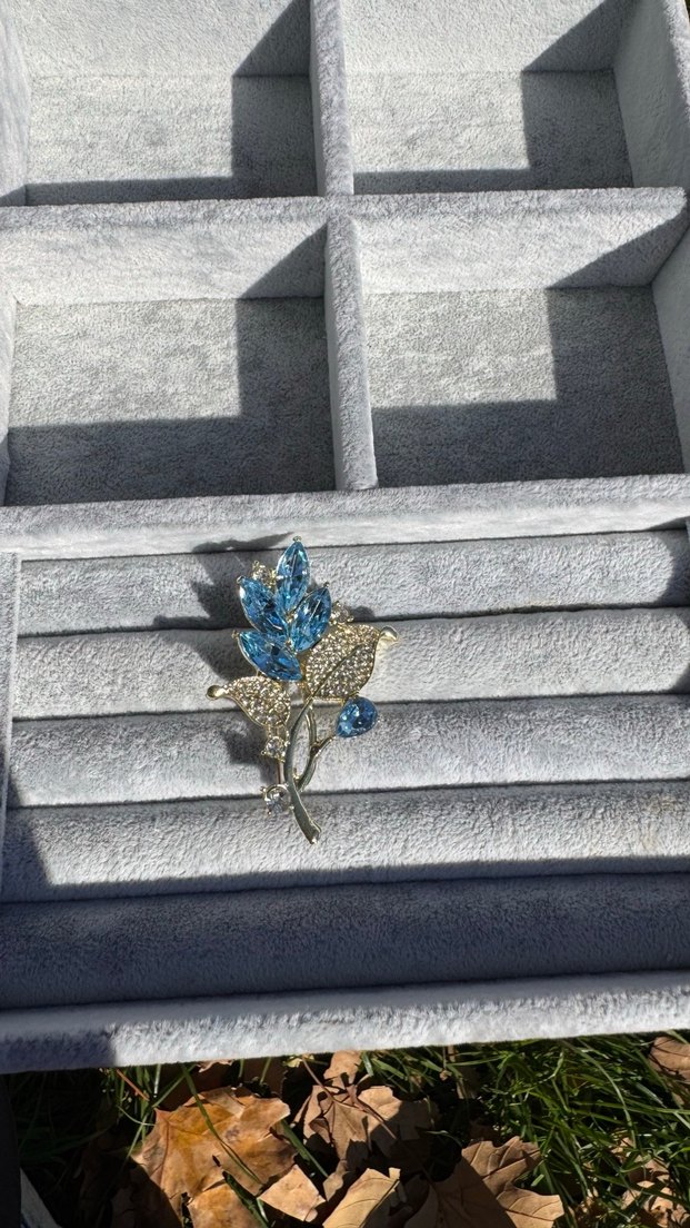 Mavi Taşlı Nakışlı Vintage Broş