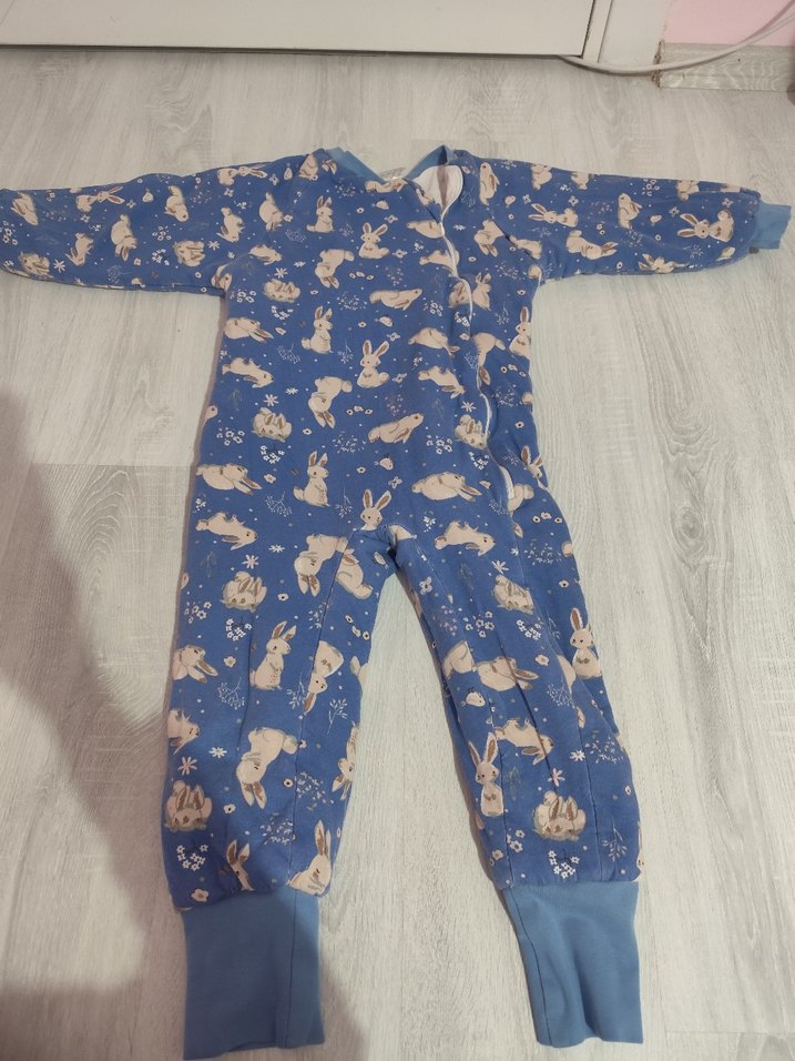 Çocuklar için yumuşak ve sıcak kumaştan yapılmış, pastel mavi zemin üzerinde sevimli tavşan desenleri bulunan uyku tulumu. Uzun kollu ve bileklerde ribanalı yapıya sahiptir. boy 97cm kol boyu koltuk altından 30 cm