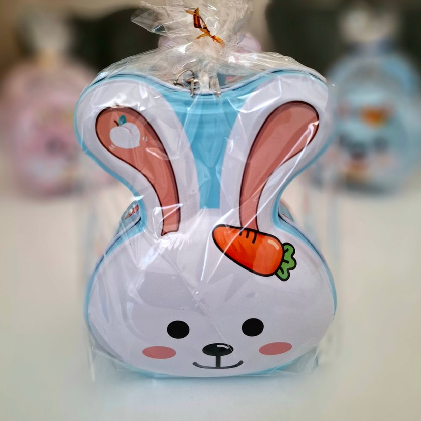Sevimli Hayvan Figürlü Metal Kumbara Çocukların severek kullanacağı, yetişkinlerin de birikim ve dekoratif amaçla tercih edebileceği şirin kumbaralar! ✨ ✔ Sağlam metal gövde ✔ Farklı sevimli tavşan desenleri ✔ Hediye paketi içinde gönderim ✔ Üstten kilitli / kolay para atma bölmesi ✔ Tasarruf alışkanlığı kazandırır Ürün Ölçüleri: Yaklaşık 14x10 cm Hem hediye hem de kullanım için ideal. Para biriktirme alışkanlığı kazandırırken odalarına da tatlı bir dekor ekleyin!