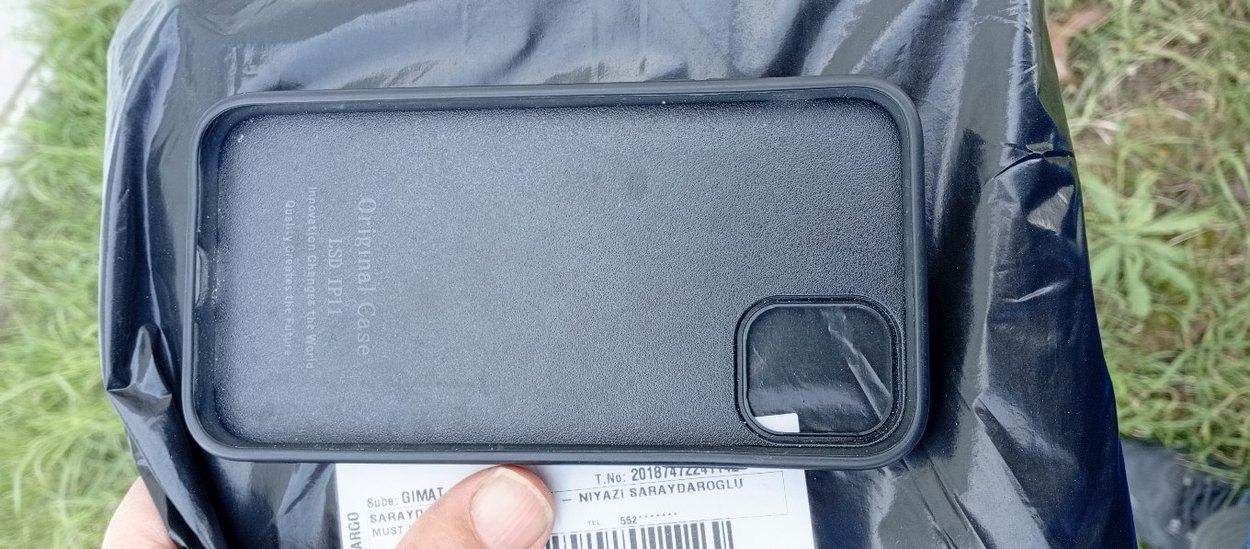 Gri zemin üzerinde mavi telefon ekran koruyucu. Etiket üzerinde '552, NIYAZI SARAYDAROGLU' yazısı yer alıyor.