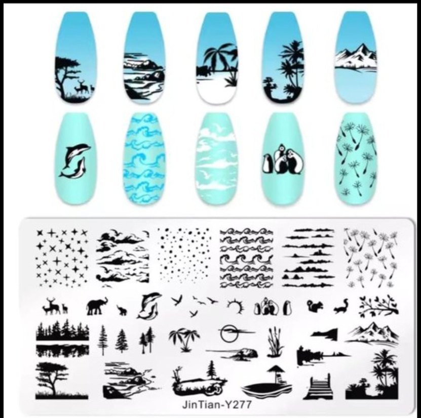 JinTian-Y277 kodlu, doğa ve hayvan desenli mavi temalı tırnak süslemeleri seti. Tırnaklara detaylı desenler ekler.