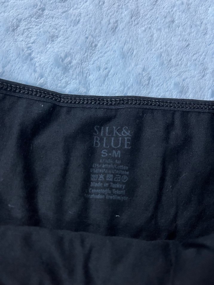 Mavi tie-dye desenli, normal midi boyda, S-M beden, hamile ve emzirme iç çamaşırı. Rahat ve yumuşak kumaşlıdır.