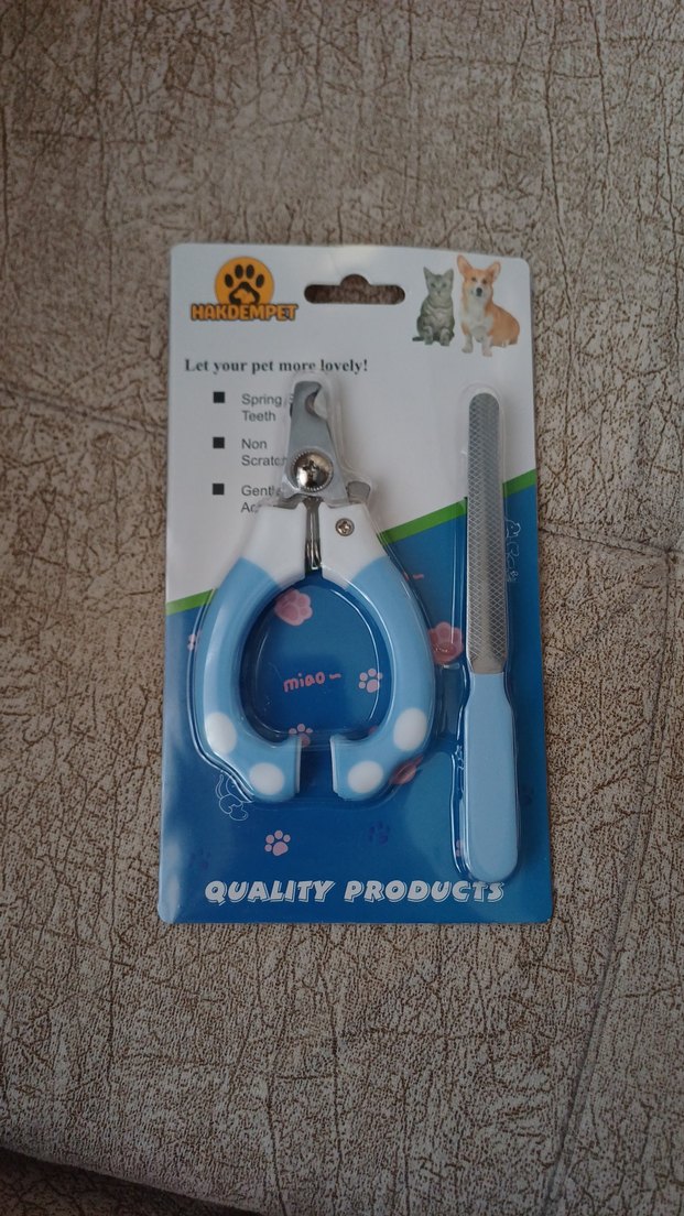 Pastel mavi tırnak makası ve törpü seti, yaylı mekanizmalı ve nazik tasarımlı, evcil hayvanınızın tırnaklarını güvenle bakım yapmanızı sağlar.