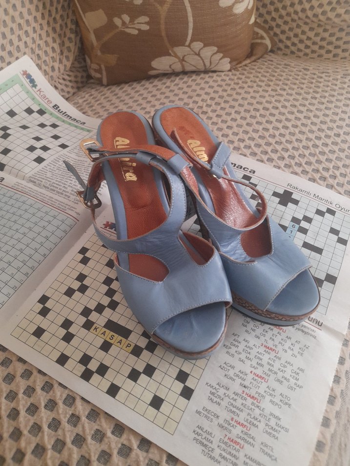 Mavi Tokalı Platform Topuklu Kadın Ayakkabı