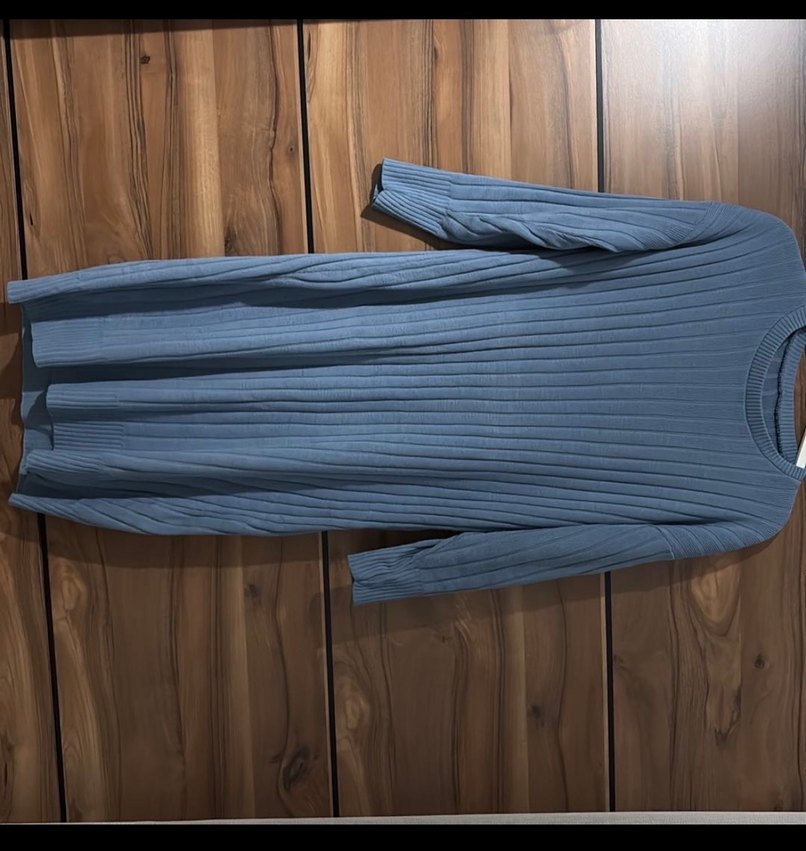Mavi renk, triko dokulu. Günlük kullanım için ideal. Bir kere giyildi. Ben s/M giyiyorum biraz bol olsun diye bir büyük beden almıştım fakat bana çok bol oldu kemerle kullandım. L ve XL bedenlere bile olur. bol geldiği için satıyorum
