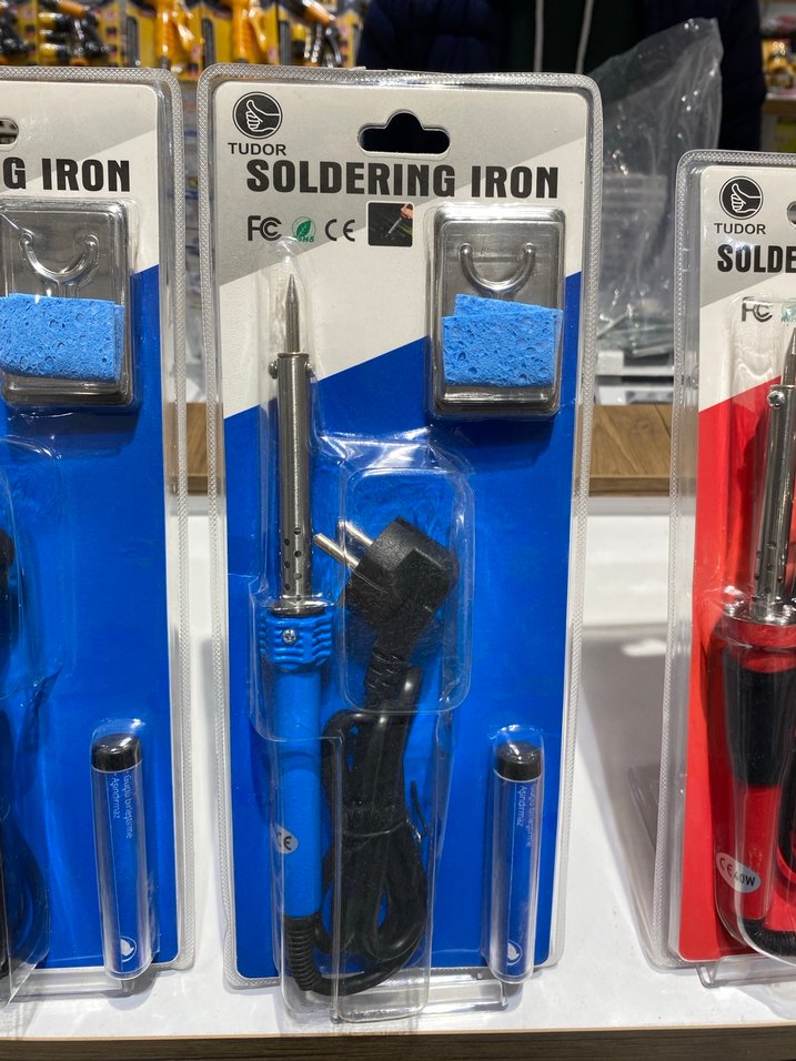 Mavi TUDOR lehimleme seti; lehimleme demiri, sünger ve güç kablosu içerir. Hassas lehimleme işleri için uygundur.