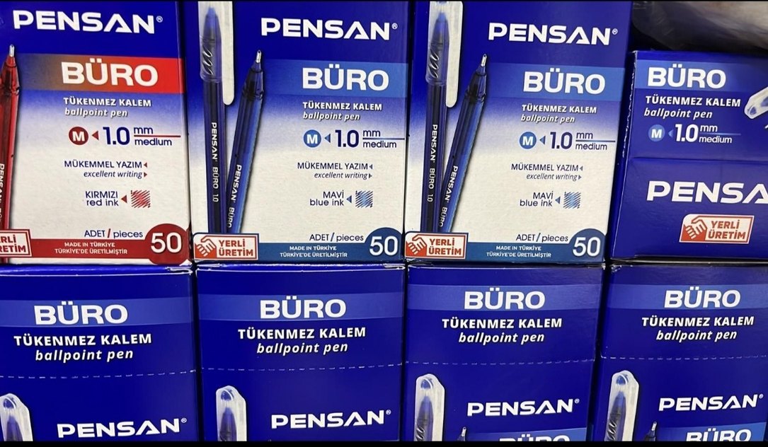 50 adet Pensan mavi tükenmez kalem, 1.0 mm orta uçlu, akıcı yazı sağlar. Türkiye'de üretilmiştir. ✒️