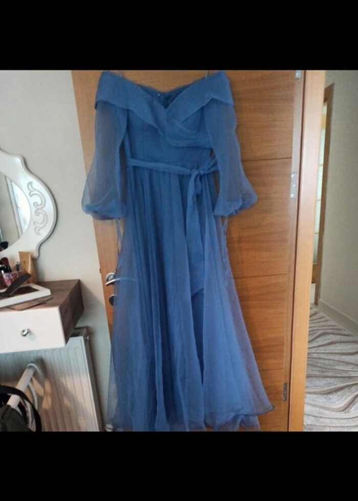 Sadece bir kez giyildi kollar ve etek tül içi astarli şık elbise