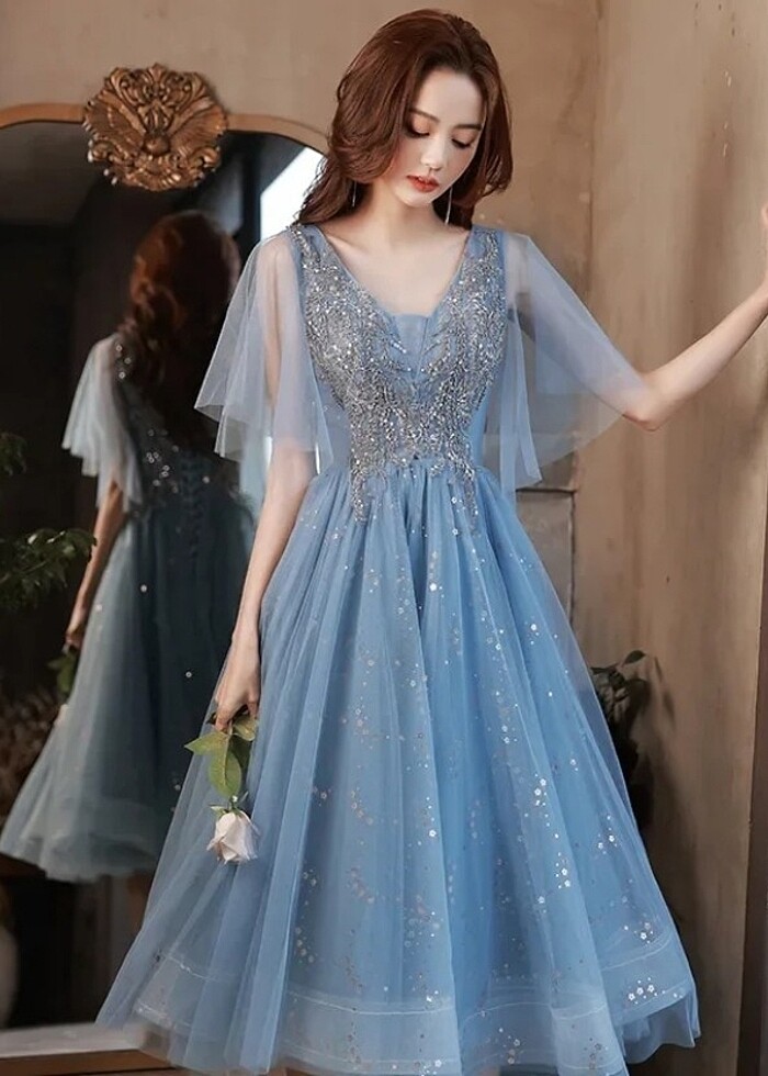 Mavi tül abiye