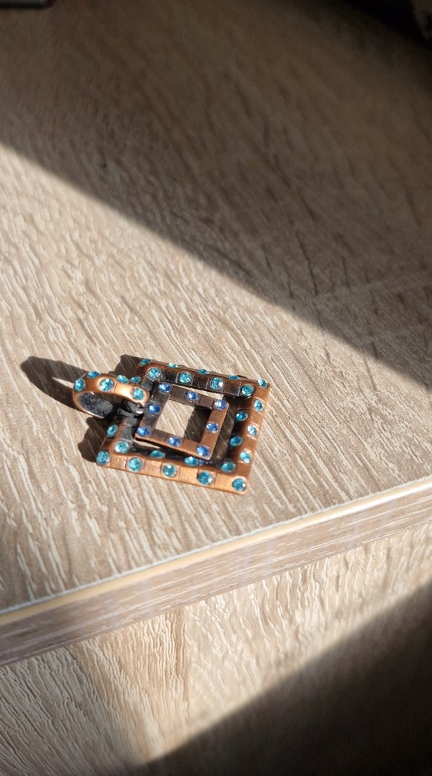 eskitme metal, parlak mavi taşlı, günlük kullanıma uygundur.