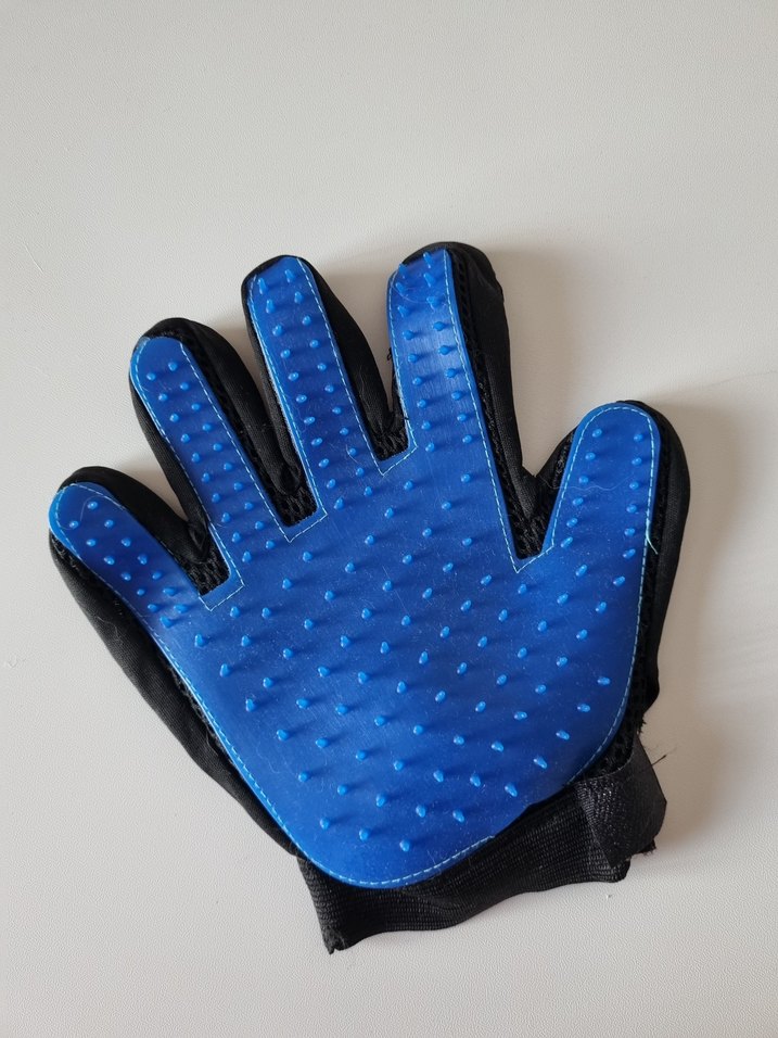 Mavi tüy toplama eldiveni, yumuşak kıllarıyla kedinizin dökülen tüylerini etkili şekilde temizler. Rahat ve kullanışlıdır.
