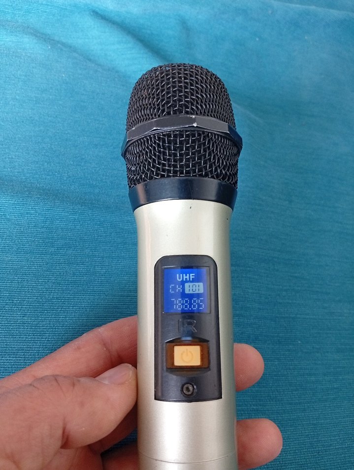 Mavi kablosuz mikrofon, UHF 188.85 MHz frekansında, net LCD ekran ve güç düğmesi ile birlikte gelir.iade kabul etmiyorum.