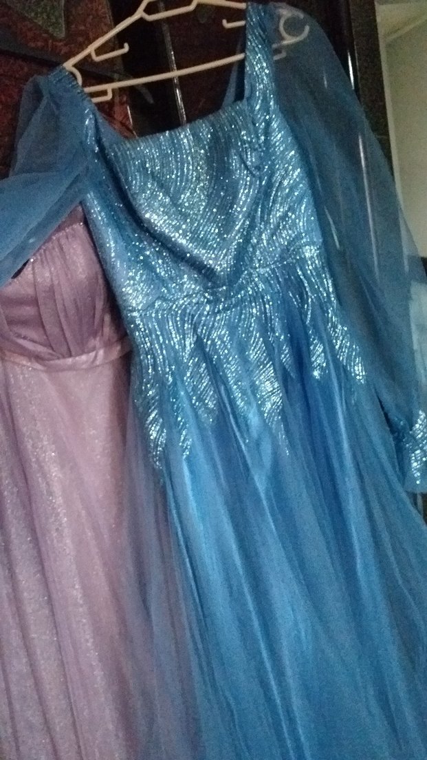 Mavi uzun, straplez yakalı, askılı ve işlemeli detaylara sahip, bohem tarzda dar kesim kadın abiye. ✨